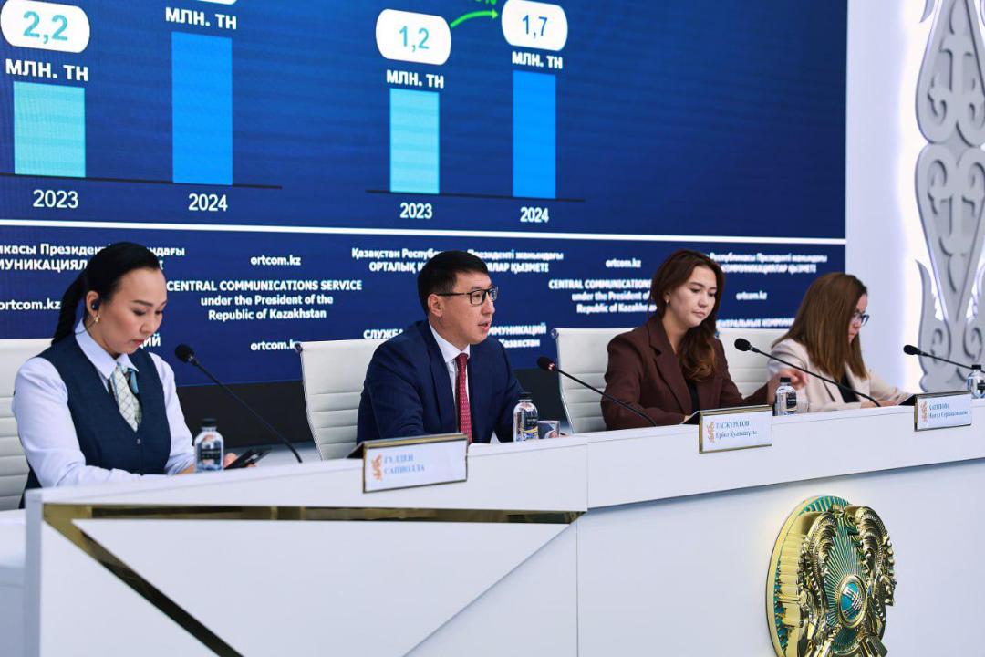 На брифинге по вопросам обеспечения продовольственной безопасности страны вице-министр сельского хозяйства Ербол Тасжуреков сообщил, что аграрный сектор демонстрирует устойчивый рост. По итогам 5 месяцев текущего года объём валовой продукции сельского хозяйства увеличился на 4 % и составил 1,3 трлн тенге.