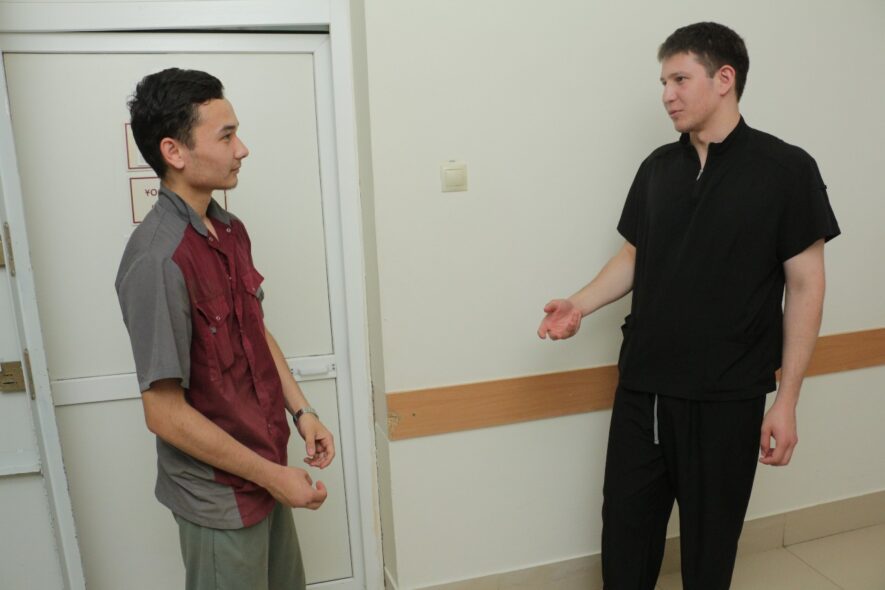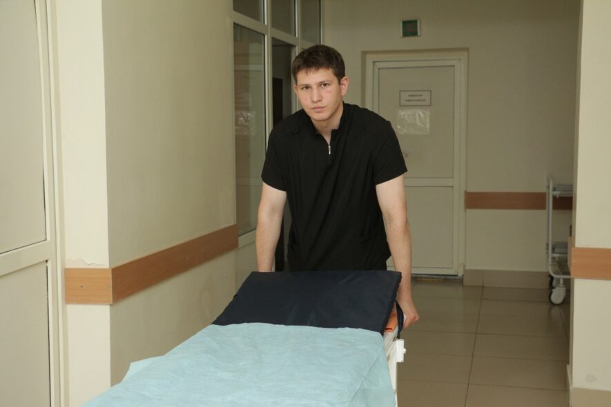 Шамиль Музаев почти год (с июля 2024 года) работает санитаром в больнице. Он студент Костанайского высшего медицинского колледжа по специальности «Фельдшер». На наш вопрос – есть ли сложности в работе санитара, он ответил: