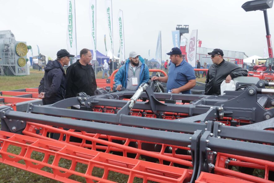 На полях же предприятие продемонстрировало непосредственно в работе тяжёлые почвообрабатывающие орудия: борона дисковая тяжёлая БДТ-7-ПР, которая предназначена для целинных и залежных земель; дисковый мульчировщик 6-метровый ДМ; прикатывающий каток Белогор, используемый в предпосевной обработке и после посевов, идеально выравнивая поля; отвальный плуг «Русич», особенность которого в том, что он имеет прикатывающие катки, после него не требуется дополнительная обработка почвы бороной и плугом, так как он сам идеально выравнивает фон.