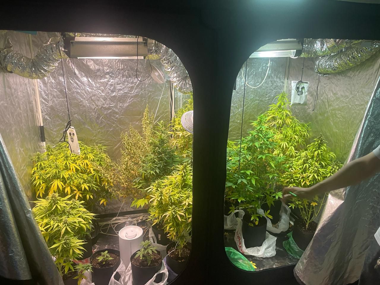 В ходе оперативных мероприятий в одном из жилых районов города была обнаружена так называемая «домашняя фитолаборатория». В подвальном помещении частного дома мужчина организовал целую систему по выращиванию каннабиса. Там были установлены лампы для досветки, вентиляторы, увлажнитель воздуха, термометр, удлинители, блоки питания и воздушный фильтр. Всё это использовалось для создания оптимальных условий роста запрещённых растений.