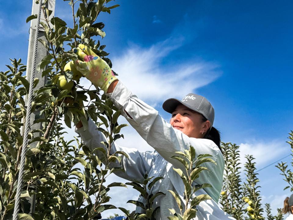 В рамках пресс-тура журналистам показали интенсивные сады, где уже ведется сбор урожая.