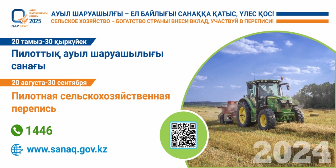 — Мы завершили онлайн-этап переписи, у сельхозформирований и домохозяйств была возможность пройти опрос на сайте sanaq.gov.kz. Тогда участие приняли свыше 600 тыс. респондентов. Теперь начинается более масштабный этап: интервьюеры будут обходить дома и собирать данные с помощью планшетов. Призываем всех активно участвовать и предоставлять актуальную информацию. Вопросы простые и касаются только сельхоздеятельности. Все ответы используются исключительно в статистических целях и не передаются третьим лицам, – отметил руководитель Бюро национальной статистики Агентства по стратегическому планированию и реформам Республики Казахстан Максат Турлубаев.
