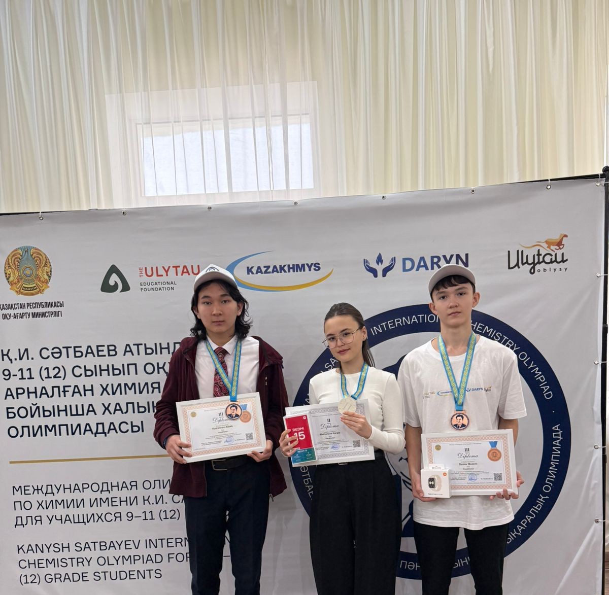 Приятно, что все три участника стали призерами международного уровня, завоевав одну серебряную и 2 бронзовые медали. Серебряным призером олимпиады стала Абжанова Наргиз, а бронзовые медали – у Кадралинова Алибека и Даирова Муслима.