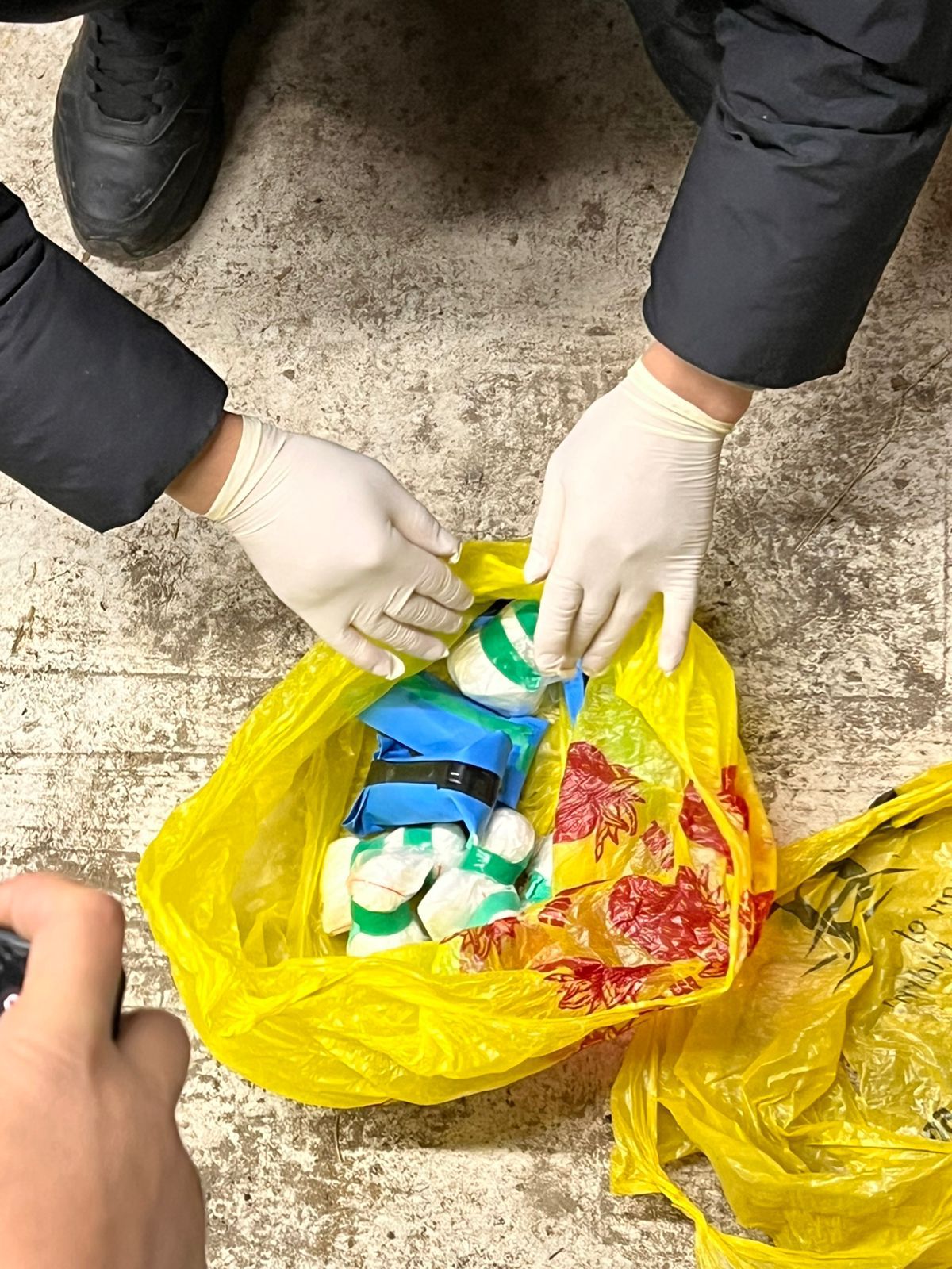 В результате обыска в гараже подозреваемого сотрудники полиции обнаружили и изъяли 11 полиэтиленовых свёртков, обмотанных изолентой, внутри которых находилось вещество белого цвета со специфическим запахом.