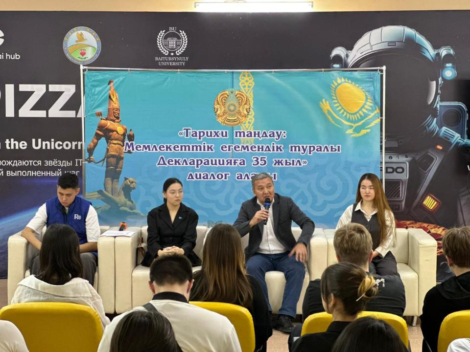 Первым выступил Айбек Шалгимбеков, кандидат исторических наук и доцент кафедры истории Казахстана. Он подробно остановился на правовом и политическом весе Декларации, отметив, что именно она стала тем фундаментом, который укрепил национальное самосознание и задал направление дальнейшему государственному развитию.