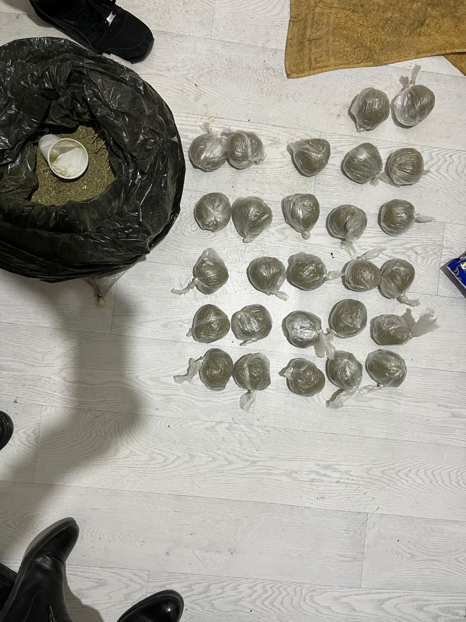 В ходе обыска по месту его проживания был обнаружен и изъят мешок с веществом зелёного цвета со специфическим запахом, а также пакет с 27 свёртками аналогичного содержимого.