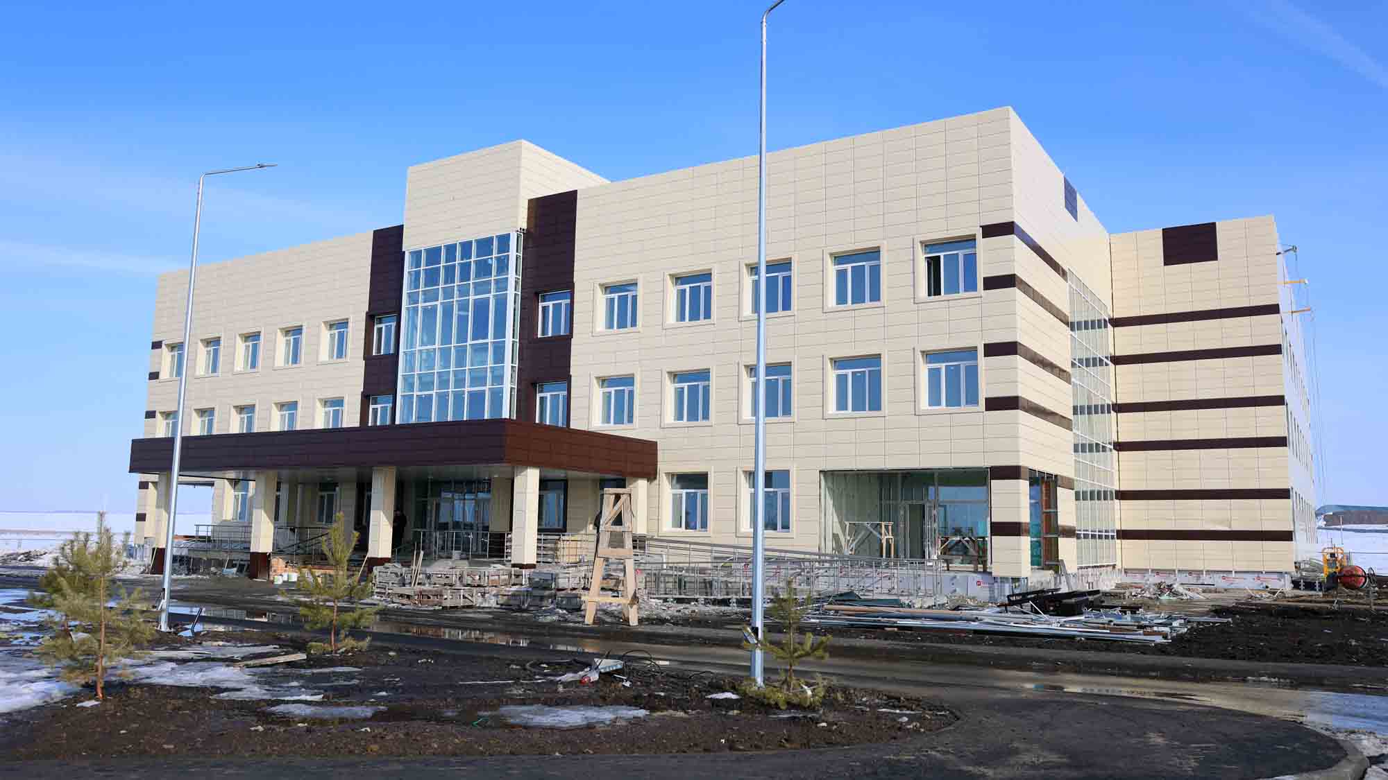 Жалпы ауданы 4,7 мың шаршы метрді құрайтын үш қабатты емхана рентген аппаратымен, флюорографпен, маммографпен, ультрадыбыстық диагностика аппаратымен, ЛОР-комбайнмен, стоматологиялық қондырғымен, биохимиялық анализатормен жабдықталады.